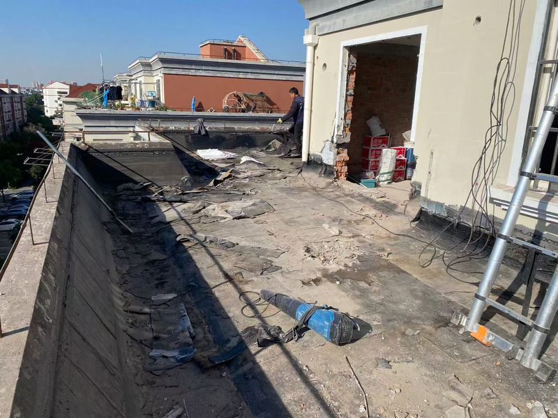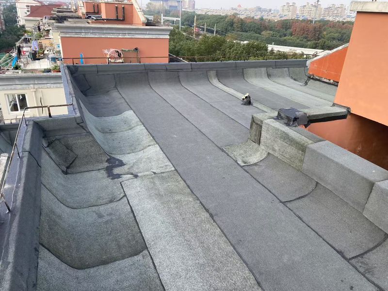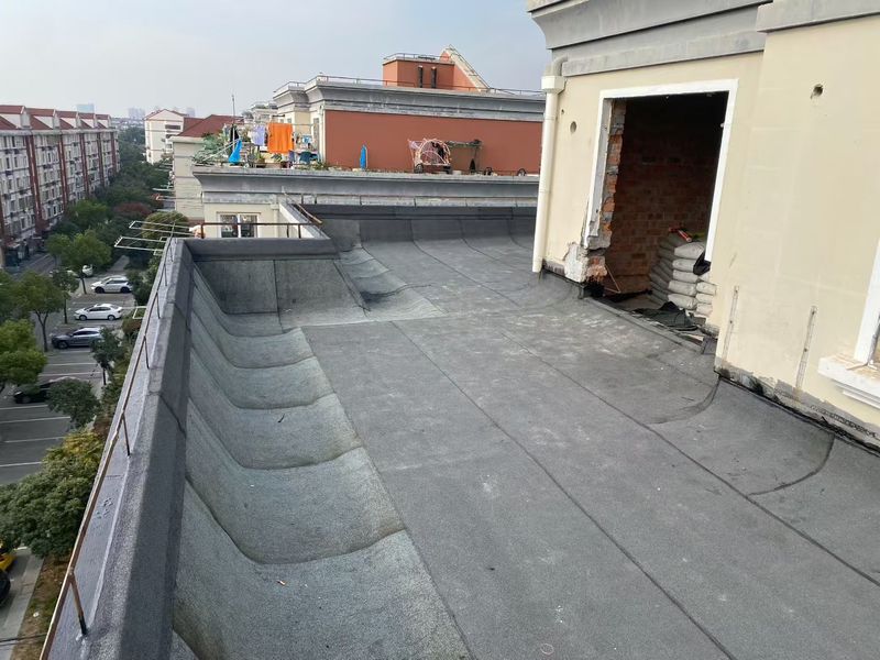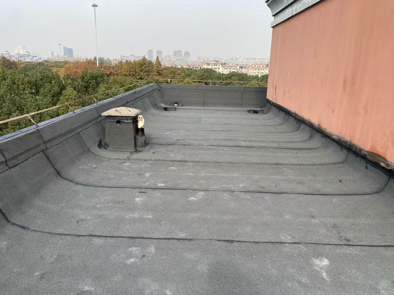 揚州綠城?鳳鳴隱廬樓頂防水,采用兩道設防體系,適配揚州多雨潮濕氣候,施工前徹底清理基層,修補裂縫、抹平陰陽角(R≥50mm),確保基層含水率≤9%。先在女兒墻、管根、落水口等節(jié)點,涂刷1.5mm 非固化橡膠瀝青涂料并粘貼附加卷材層。大面采用4mm SBS 改性瀝青卷材(-25℃低溫柔度)熱熔鋪貼,長邊搭接≥80mm、短邊≥100mm,輥壓密實無空鼓。卷材上翻≥250mm,金屬壓條固定、密封膏封嚴。